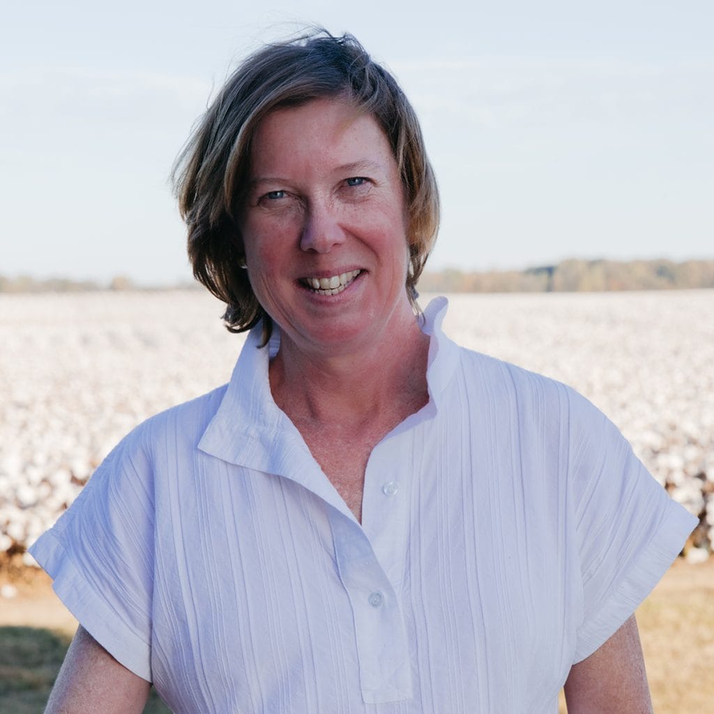 Blyth is a single mom to two young children and a fifth-generation farmer of Blythe Cotton Co. in northwest Alabama. For 100 years, Blythe Cotton Co. produced only cotton, but more recently has introduced crop rotation—rotating corn followed by cotton, wheat, and soybeans—to enrich the soil. Further, Blythe integrates livestock, including horses and cattle, to graze and recycle nutrients across the landscape. She is dedicated to nurturing her land for future generations.
